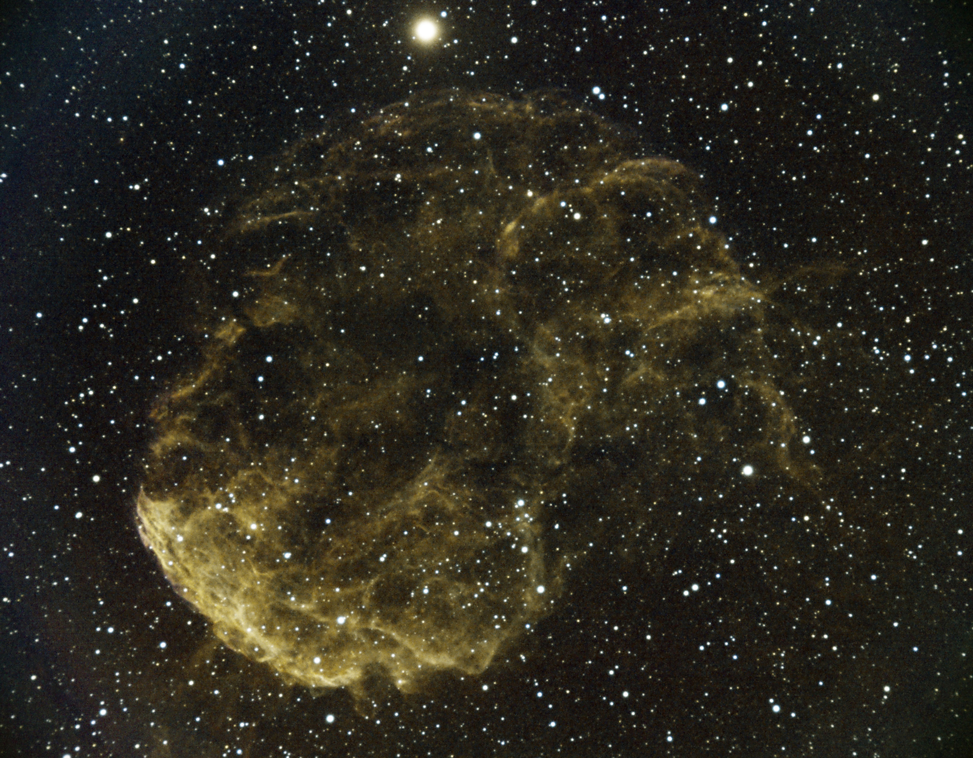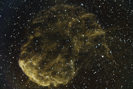 Restos de una Supernova en la constelación de Géminis. Posee mucha estructura en distintas longitudes de onda. En el visible presenta aspecto filamentoso. Las imágenes tomadas combinando filtros de banda estrecha dan colores peculiares. Al ser muy bajo el tiempo de integración, el procesado ha sido un verdadero dolor de cabeza, y el resultado no del todo satisfactorio. Volveremos a hacer más capturas en días posteriores para mejorar la resolución y bajar los niveles de ruido.