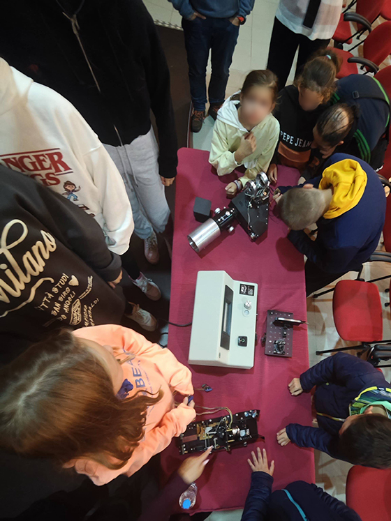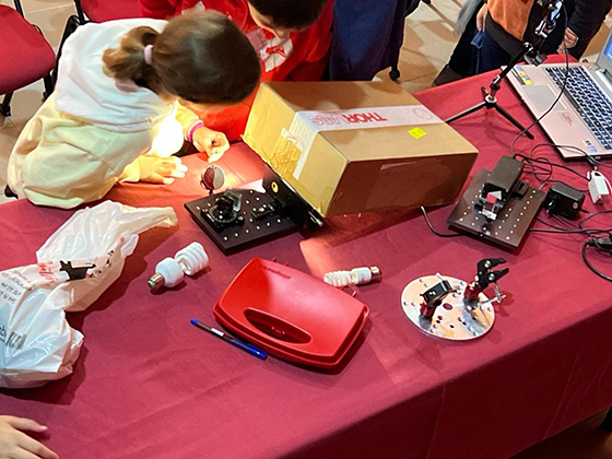 Una experimentación directa, donde el público pudo ver con sus propios ojos espectros de emisión de distintas fuentes de luz. La magia de la observación de líneas espectrales es una experiencia única, y es posible que delante de esta mesa tengamos ya a un premio nóbel de física del futuro...